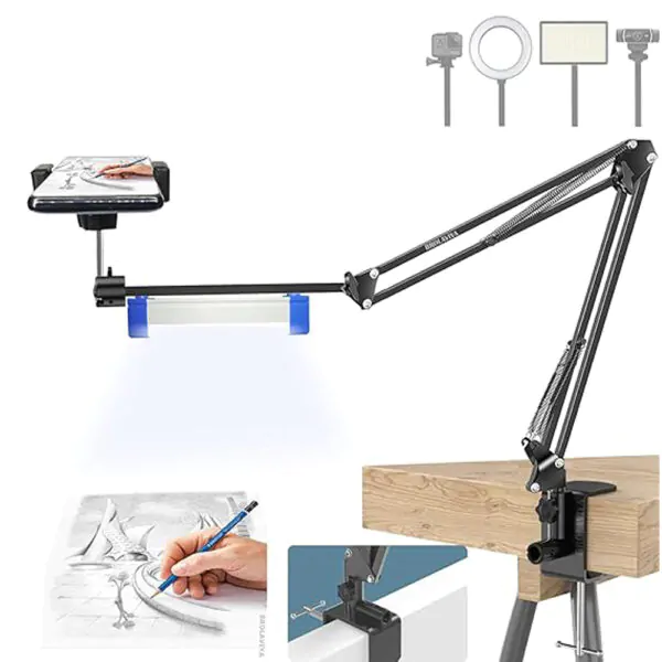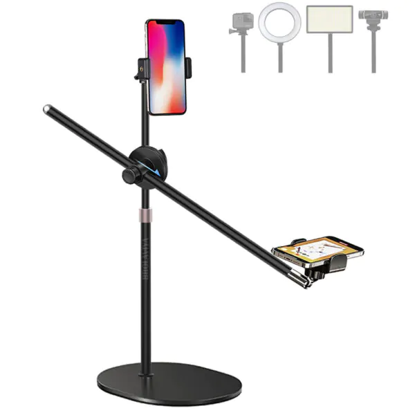 BROLAVIYA® Overhead Video Mobile Metal Desktop Stand with 1/4″ Male Adaptor For Camera, Gopro and Mobile Bracket For Online Teaching, Video, Desktop, Bedroom, Office