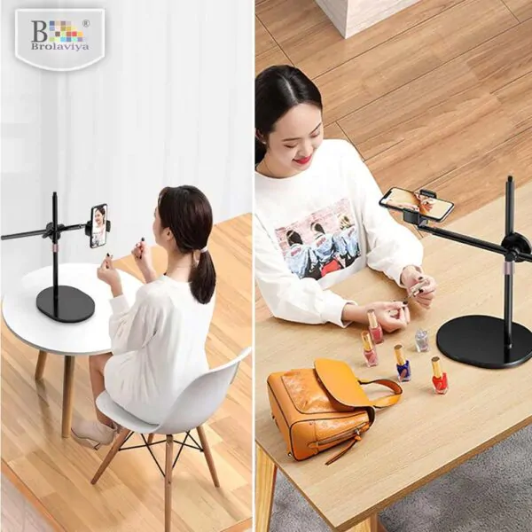 BROLAVIYA® Overhead Video Tabletop Stand Phone Holder, Metal Long Lazy Arm and Bracket for All Mobiles Phone For Streaming, Overhead Video, Desktop, Bedroom, Office, Black