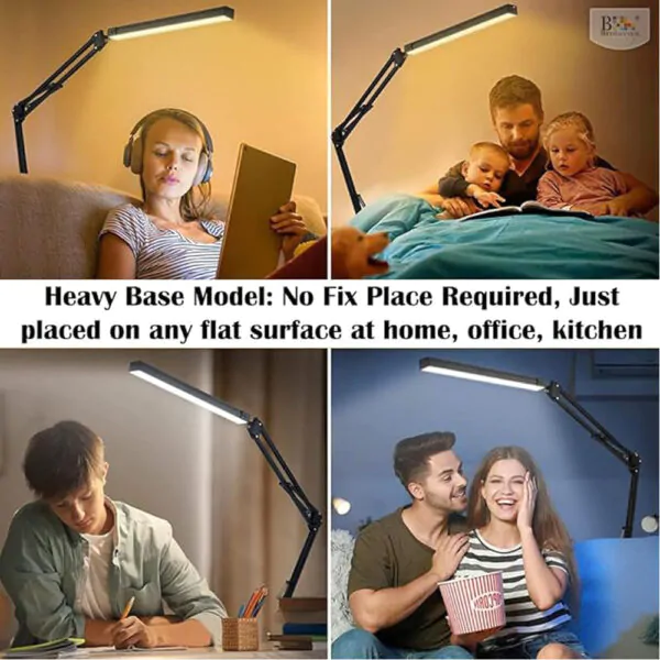 BROLAVIYA® Heavy Base LED Desk Lamp Light with Metal Arm Table Lamp Stand, 3 Lighting Modes, 360 Degree Spin for Home, Office, Desktop, Bedroom, Reading etc
