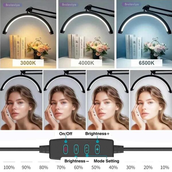 BROLAVIYA® 16 inch Half Moon Tabletop Lamp Light with 3 Axis Swing Metal Arm Stand, 3 Lighting Modes, 360 Degree Spin for Detailed Work, Home Office, Desktop, Make up, Reading, Black