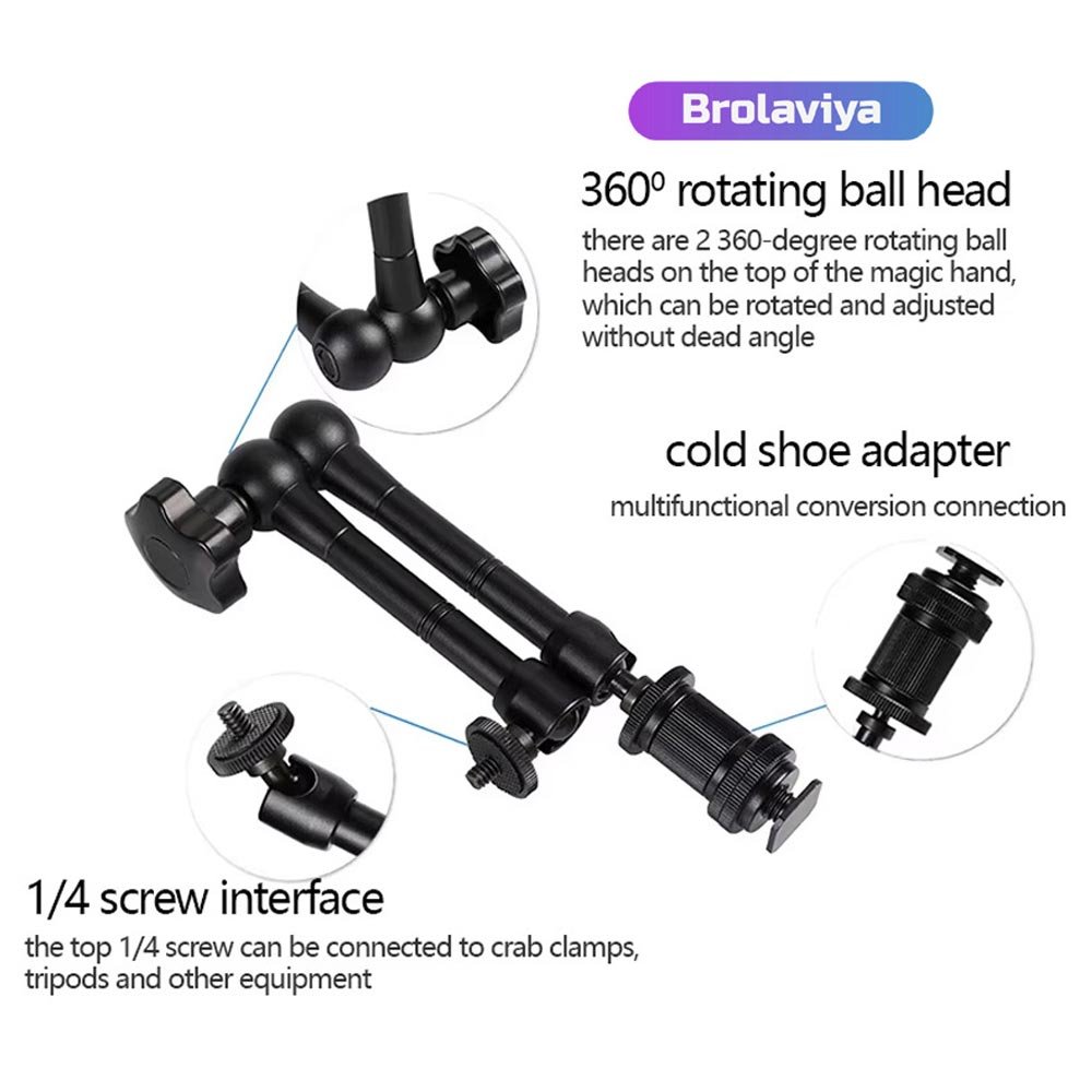 BROLAVIYA® 11 Inch Adjustable Magic Articulating Arm for DSLR Camera, LED Light, Flash Light, Monitor, Ring Light, Microphone, Aluminum Alloy