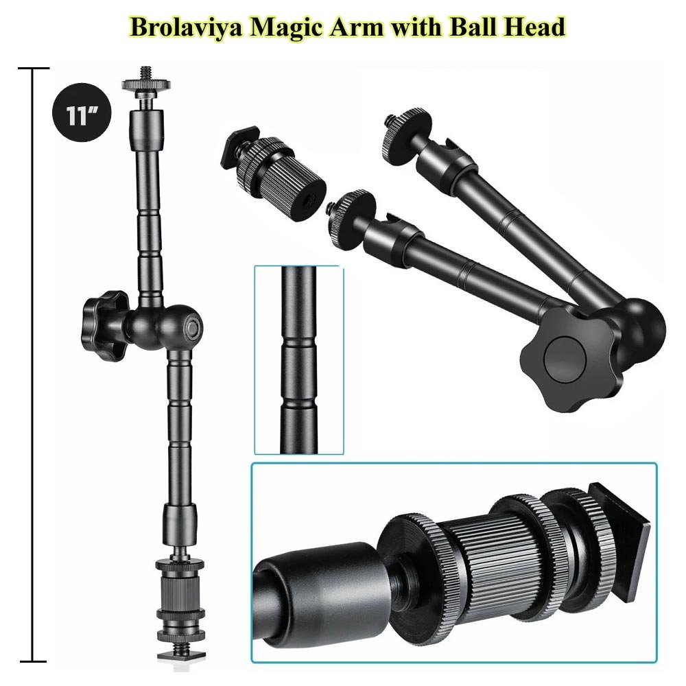 BROLAVIYA® 11”/28cm Adjustable Magic Articulating Arm for DSLR Camera, LED Light, Flash Light, Monitor, Ring Light, Microphone, Compatible with All Cameras Cage