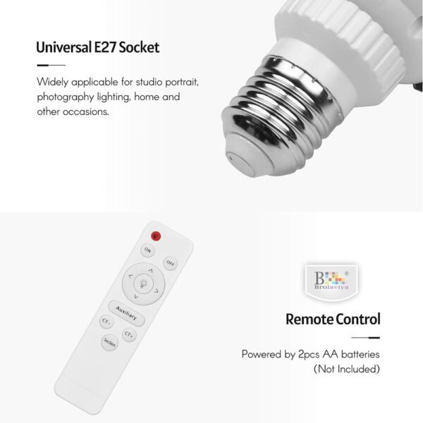 BROLAVIYA® 60W LED Photography Light Bulb with E27 Mount, Remote Control, Bi-Color 3000K-6000K, Dimmable for Studio Photography
