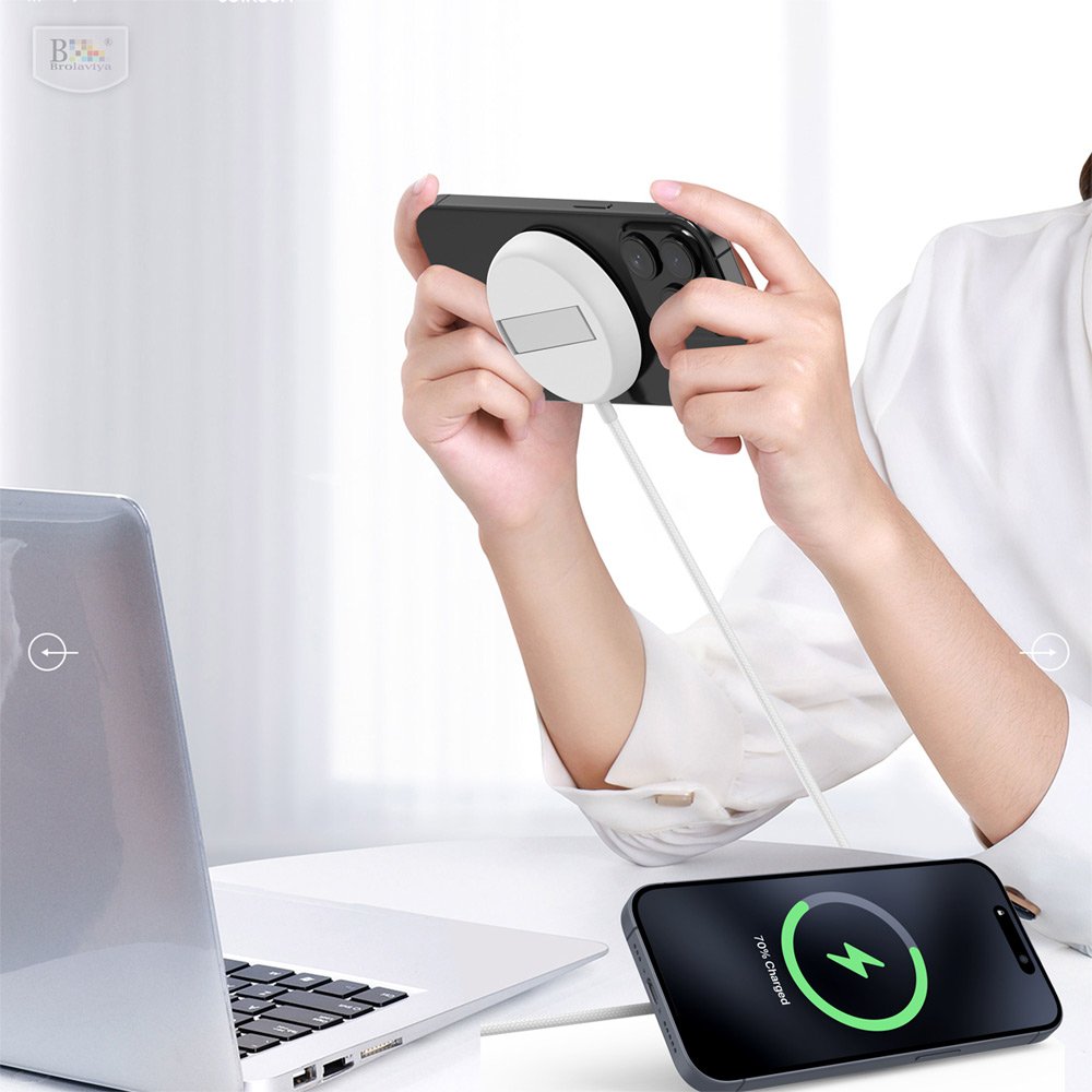 BROLAVIYA® 15W Wireless Charger with Pop-Up Stand for iPhone 17/16/15/13/12/11 Series, Qi-Certified, Type C Cable, White