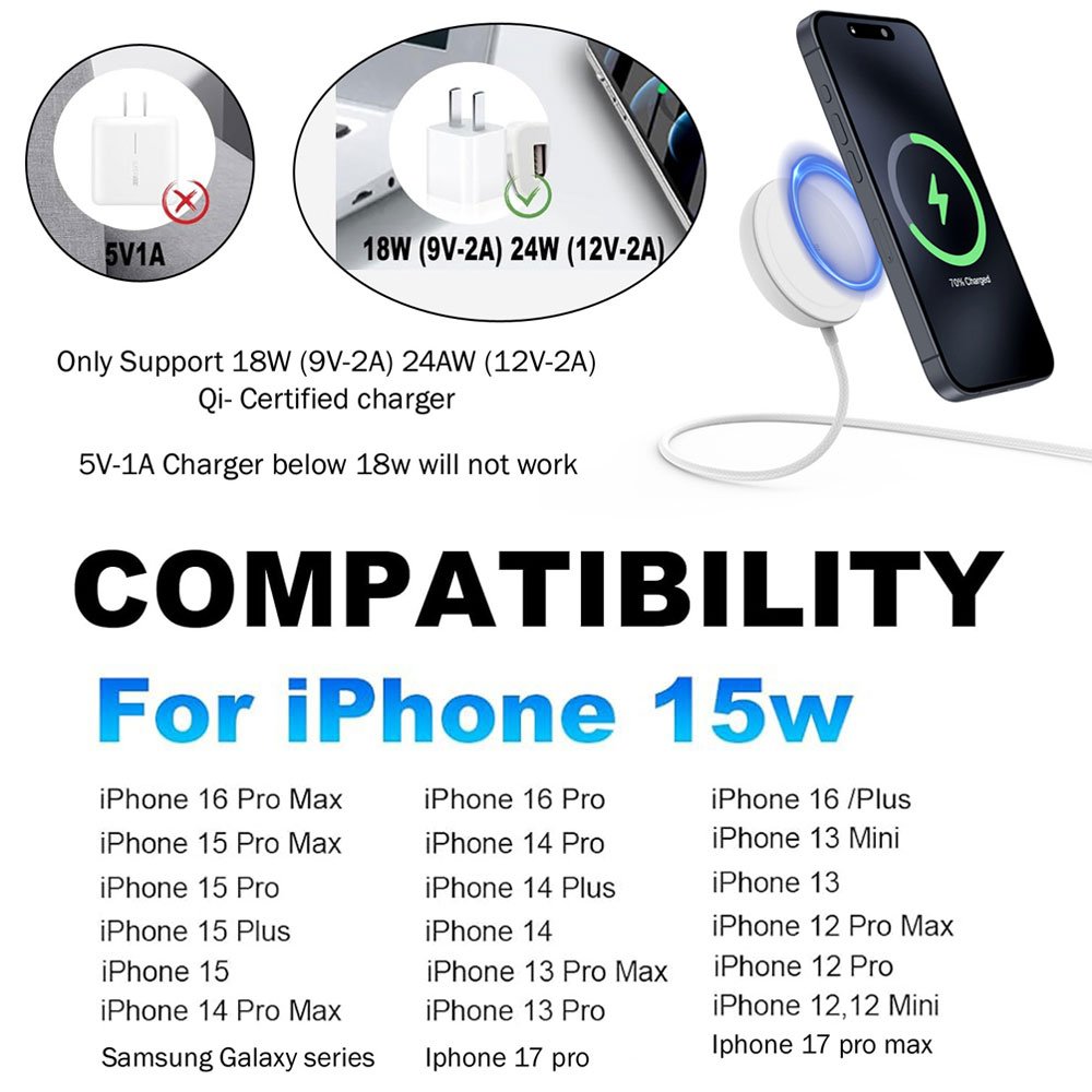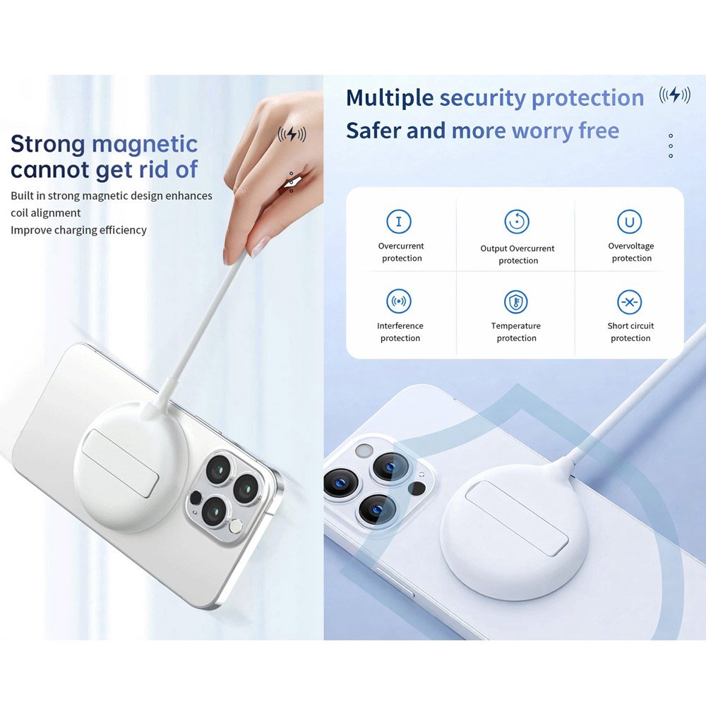 - Strong Magnetic Alignment : Built-in powerful magnets ensure secure attachment and precise coil alignment with your device, preventing slippage and maximizing charging efficiency.