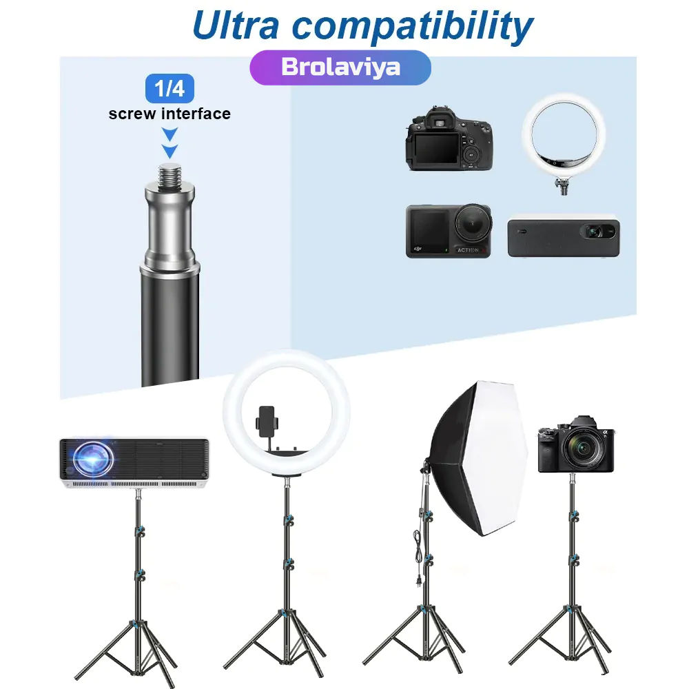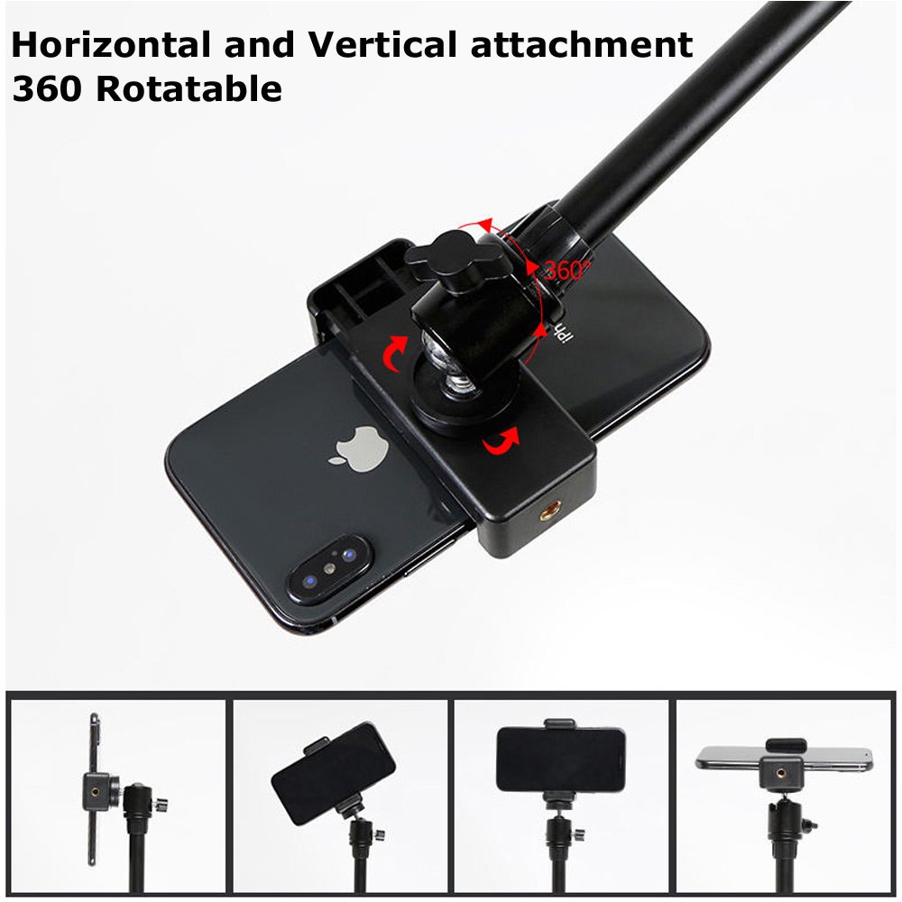 - The top of the tripod and crossbar arm is equipped with a standard 1/4” screw stud. Support camera, ring light, webcam and many more camera accessories.