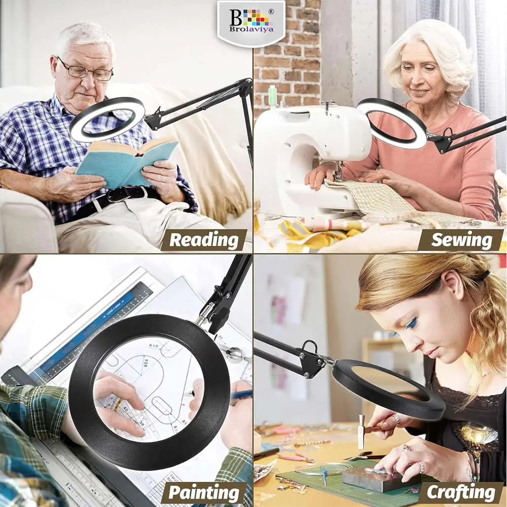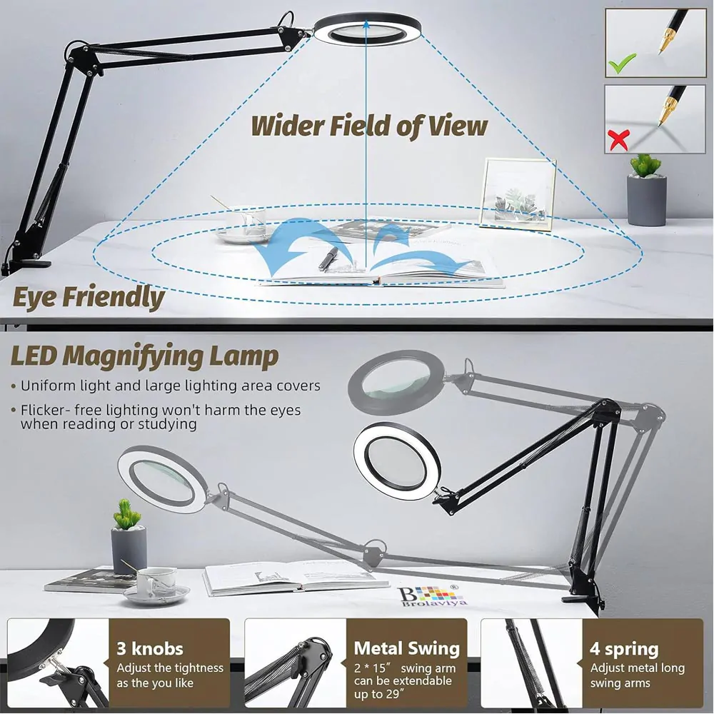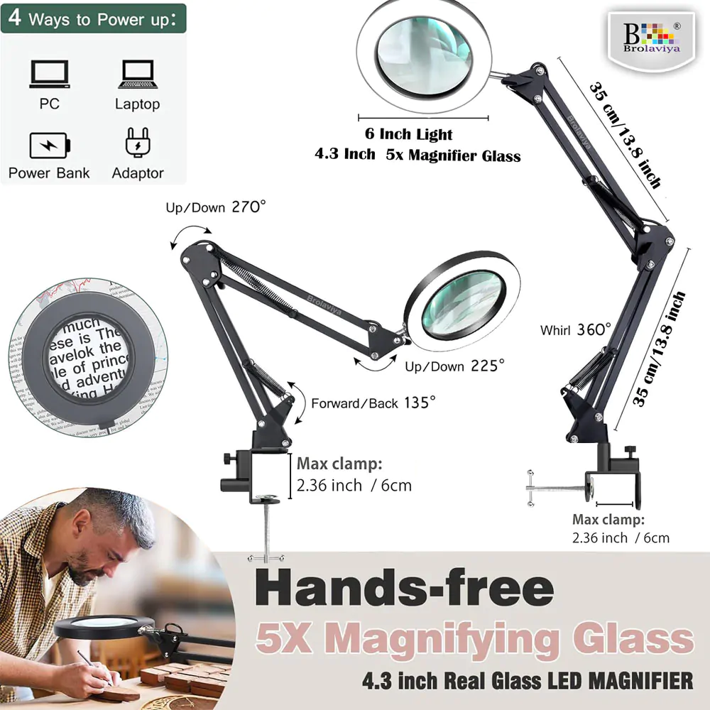 - The Brolaviya flexible and stable metal body arm allows easy adjustment and positioning. It stays firmly in place once set, providing a hands-free and convenient magnification experience. Total product length up to 30 inch variable.