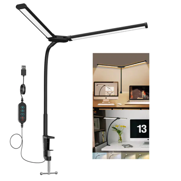 BROLAVIYA® Overhead LED Desk Lamp Light with Metal Arm Table Lamp Stand, 3 Lighting Modes For Home, Office, Desktop, Bedroom, Reading