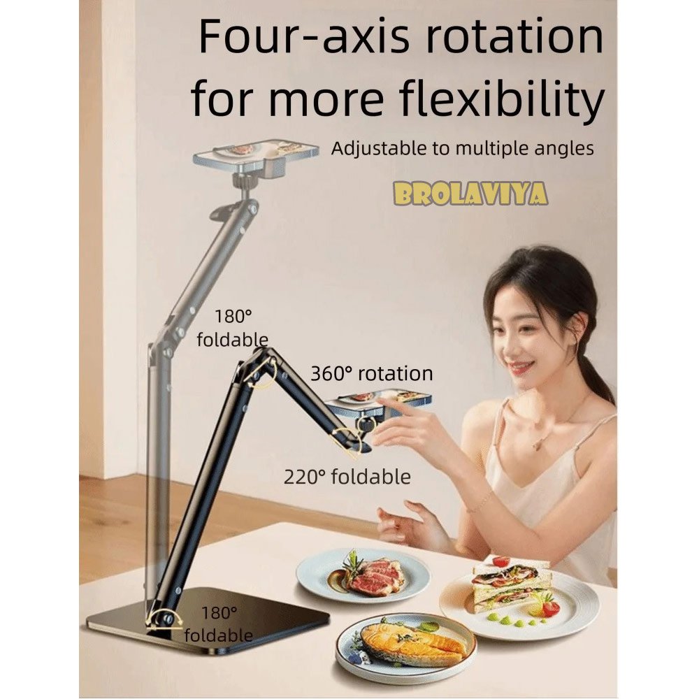 BROLAVIYA® Overhead Extendable Selfie Desktop Stand with Phone Holder, 360° Rotation, for 4-7" Mobile Phone, for Live Streaming, YouTube, Video, Photography