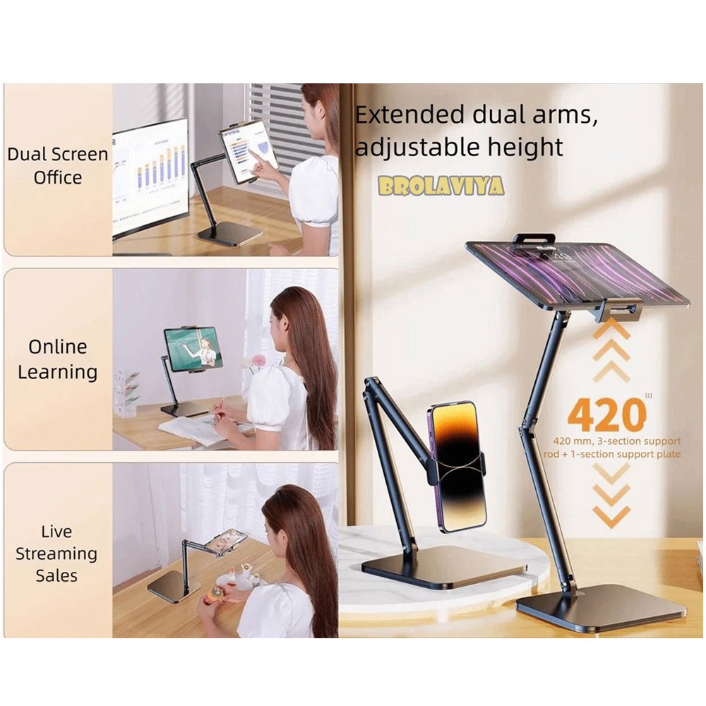 BROLAVIYA® Desk Mount Adjustable Multi Angle Long Arm Stand for Phone and Tablets 4-11 Inch, for Live Streaming, Online Learning, Overhead Drawing