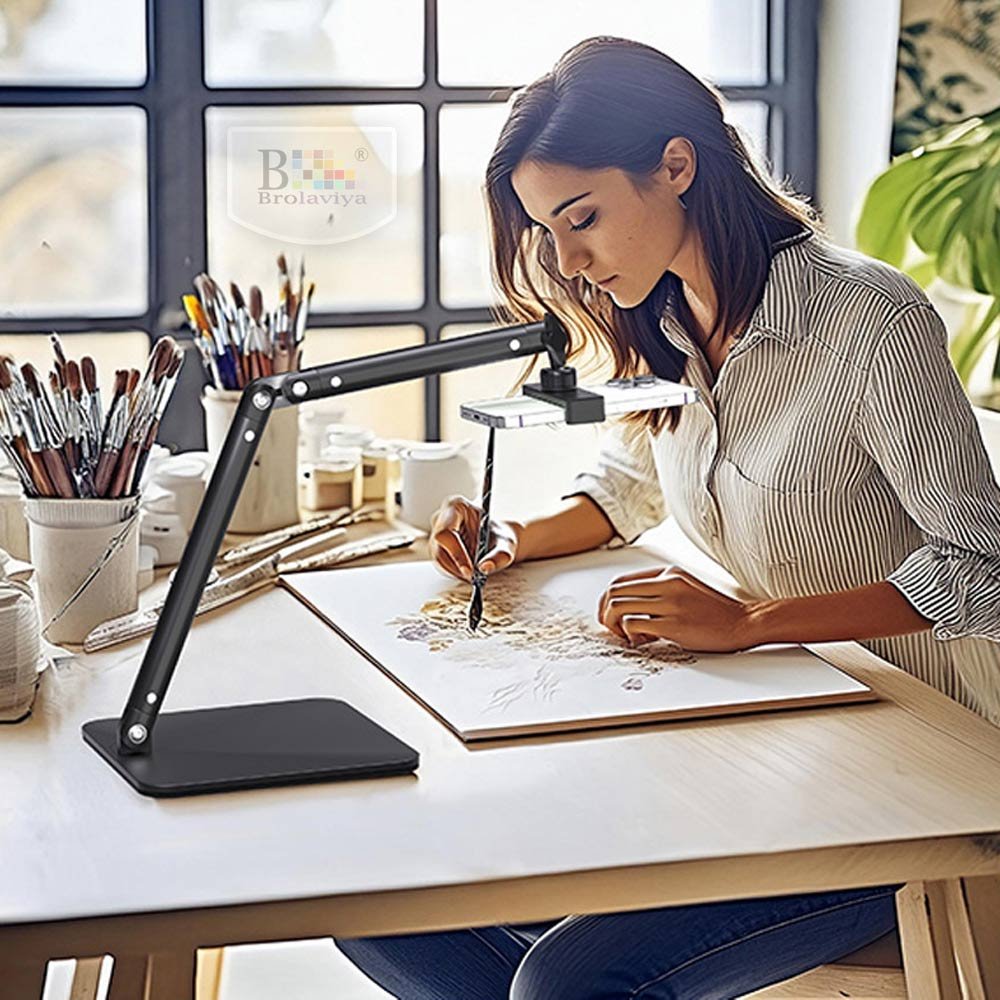 BROLAVIYA® Overhead Video Mobile Metal Desktop Stand with 1/4″ Male Adaptor For Camera, Gopro and Mobile Bracket For Online Teaching, Video, Desktop, Bedroom, Office