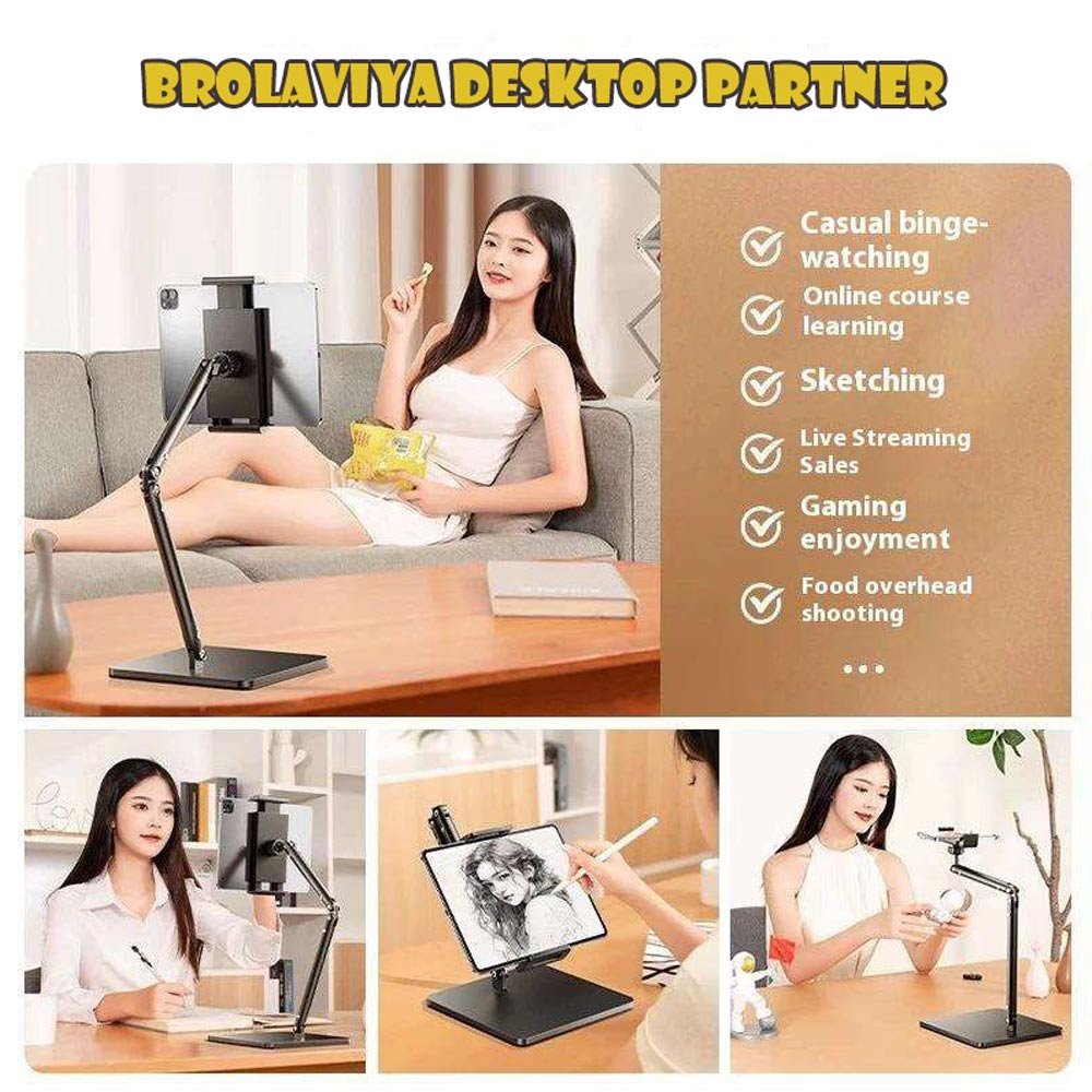 HomeAll ProductsLazy StandsDesk Stand BROLAVIYA® Desk Mount Adjustable Multi Angle Long Arm Stand for Phone and Tablets 4-11 Inch, for Live Streaming, Online Learning, Overhead Drawing