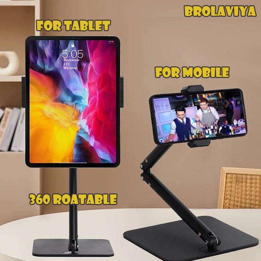 BROLAVIYA® Desktop 360 Rotating Base, Metal Stand Holder, Foldable, Compatible with iPad, Tablet, Mobile, E-Reader 4-13 inch, D5, Black