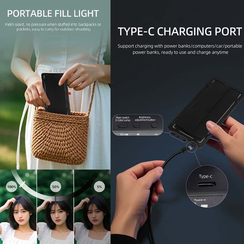 - 2000mAh Rechargeable, 3000-7000K Dimmable, USB Type-C Charging.