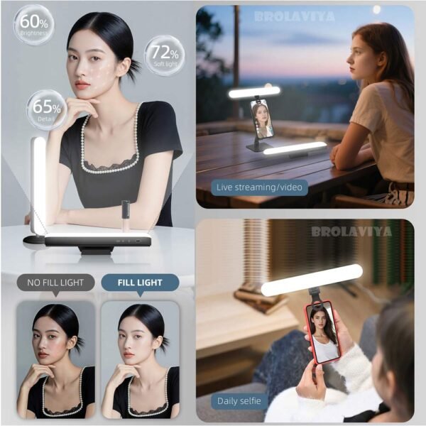 - 3 Lighting Modes and RGB Lighting Mode : The phone light clip features unique lighting modes—White, Warm, Warm White, Red, Yellow, Green, Cyan, Blue and Purple—offering a wide color temperature.