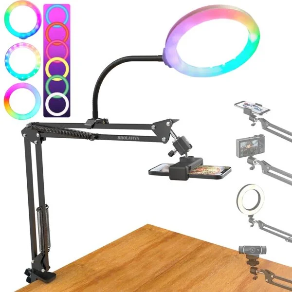 - 10 Inch LED ring light designed for indoor live video recording, Video broadcast, selfie, makeup, etc. 3 lighting modes with levels of adjustable brightness meets all your needs of different lighting effects. 5V USB power supply