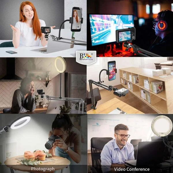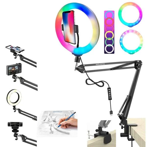 - 10 Inch LED ring light designed for indoor live video recording, Video broadcast, selfie, makeup, etc. 3 lighting modes with levels of adjustable brightness meets all your needs of different lighting effects. 5V USB power supply