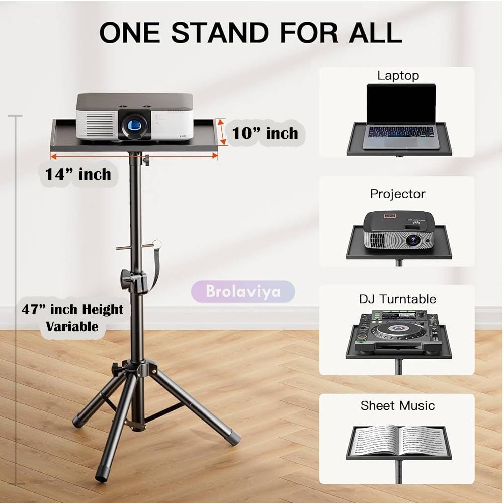 BROLAVIYA® Heavy-Duty Adjustable Floor Projector and Speaker Stand with Portable Folding Design, Heavy-Duty Black Base & Non-Slip Feet for Theater, PA Systems, Live Events, Studios