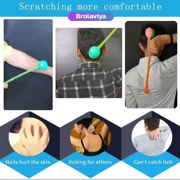 BROLAVIYA® 2 pack 2 in 1 Massage Itching Stick with Back Scratcher For Troublesome Itchy Spots and Relief, Multicolor