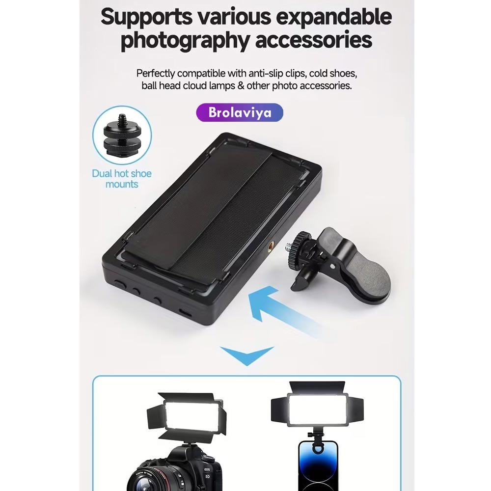 BROLAVIYA® Four-Leaf Baffle Spotlight, 2000mAh Rechargeable, Full Color RGB Video Pocket Light with Portable Clip and 1/4 Screw Hole for Mobile Phones, Cameras, Laptops, iPads, Selfie, Photography