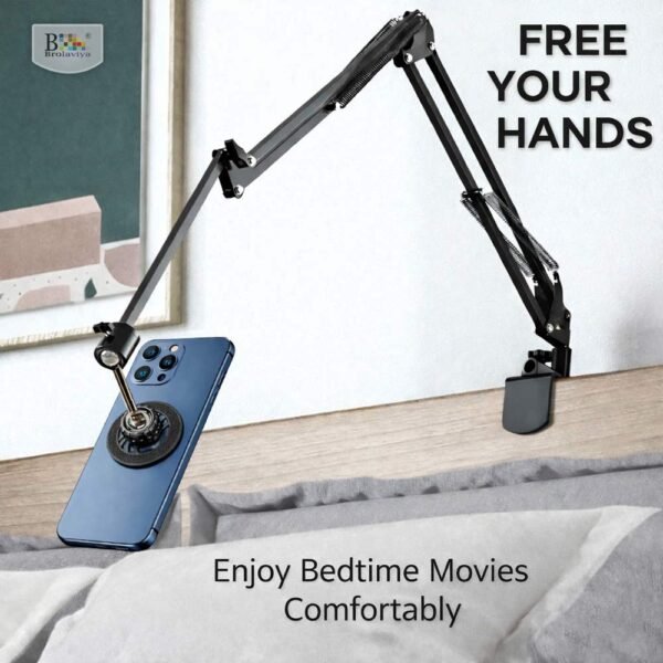 - ✅ Fully Adjustable & Flexible Arm : Multi-joint articulated Brolaviya arm allows smooth rotation, tilt and extension. Easily position your phone at the perfect viewing angle.