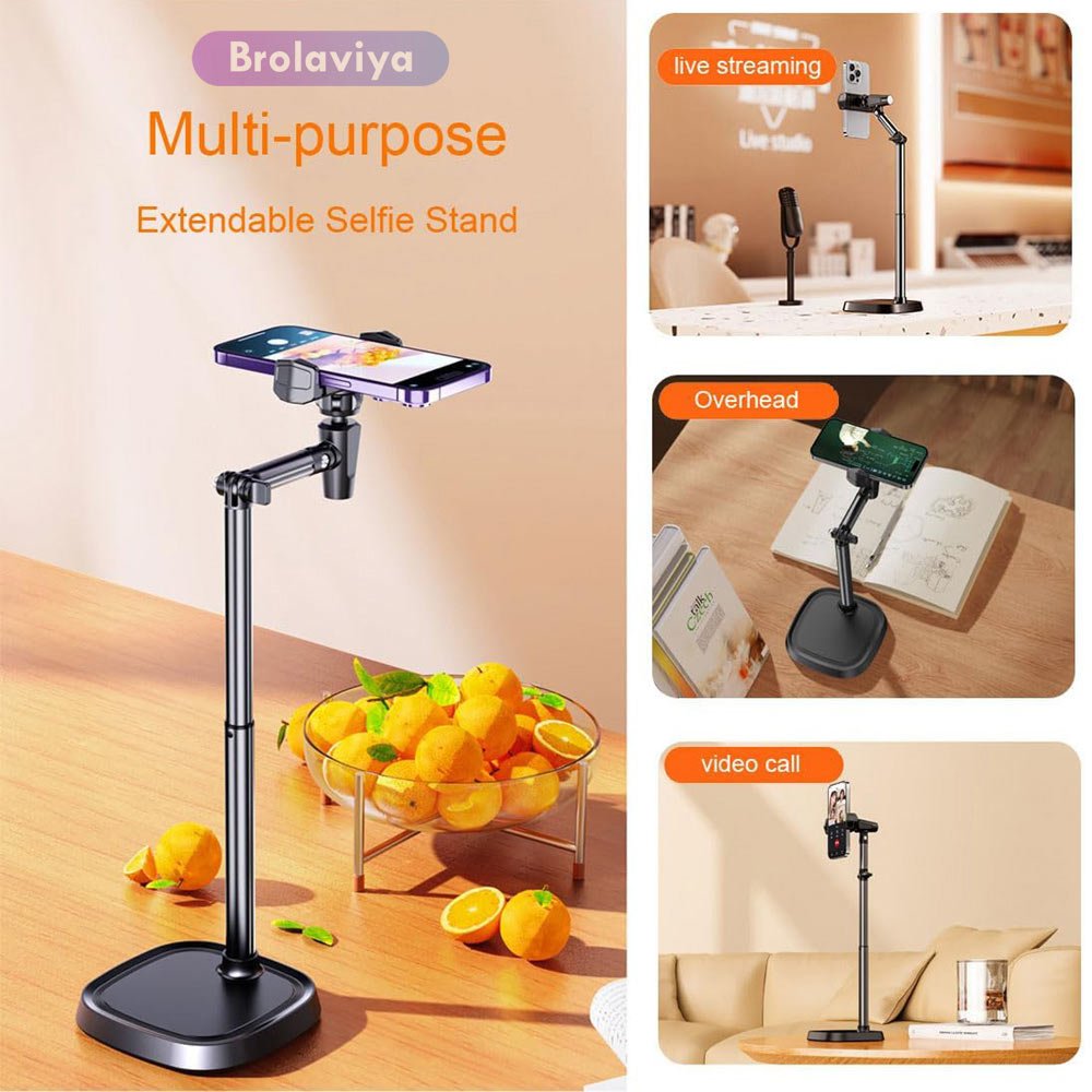 BROLAVIYA® Overhead Extendable Selfie Desktop Stand with Phone Holder, 360° Rotation, for 4-7″ Mobile Phone, for Live Streaming, YouTube, Video, Photography