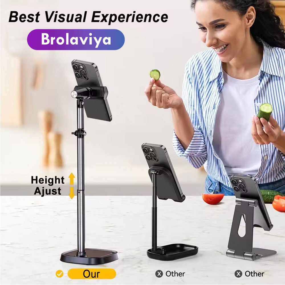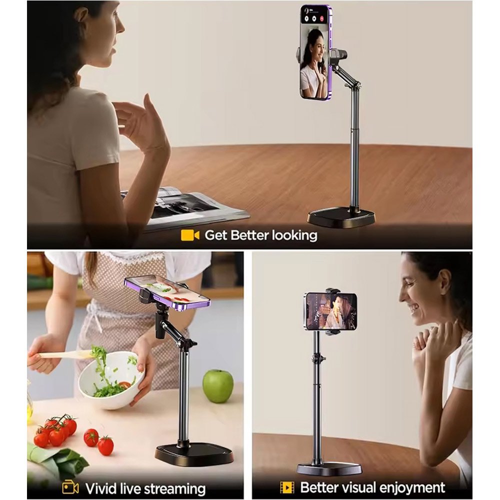 - This floor stand can be used next to the bed or around the sofa, displaying some reference info or video for you while you are cooking or being occupied with some tasks. Enhance your live streaming, study and other activities with our desk phone stand. Hands-free use in any setting.