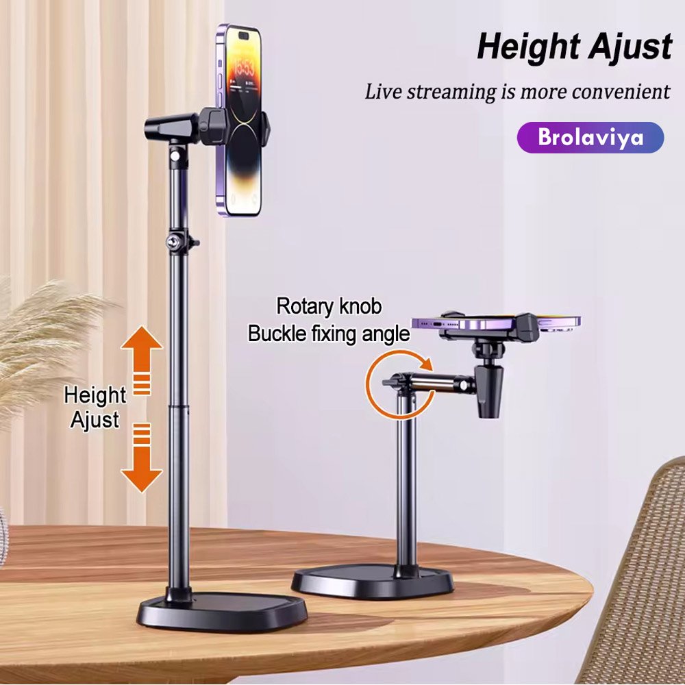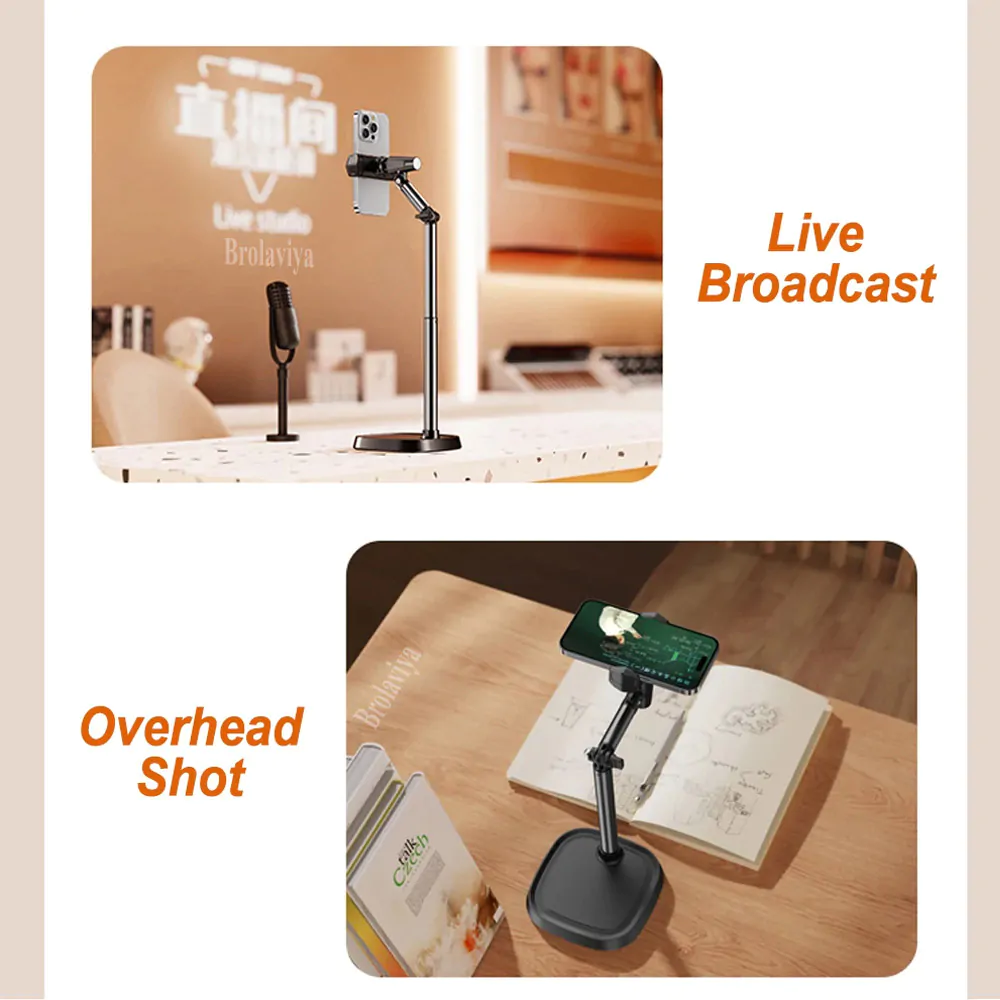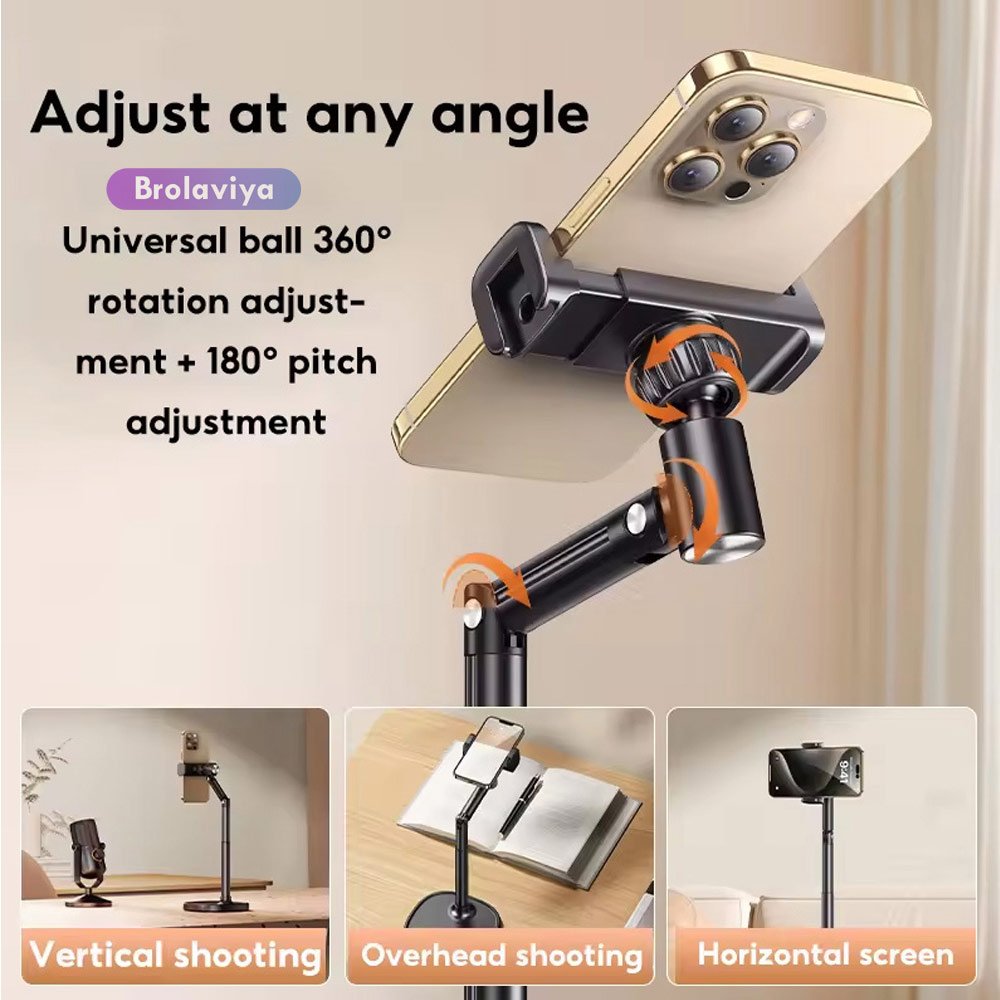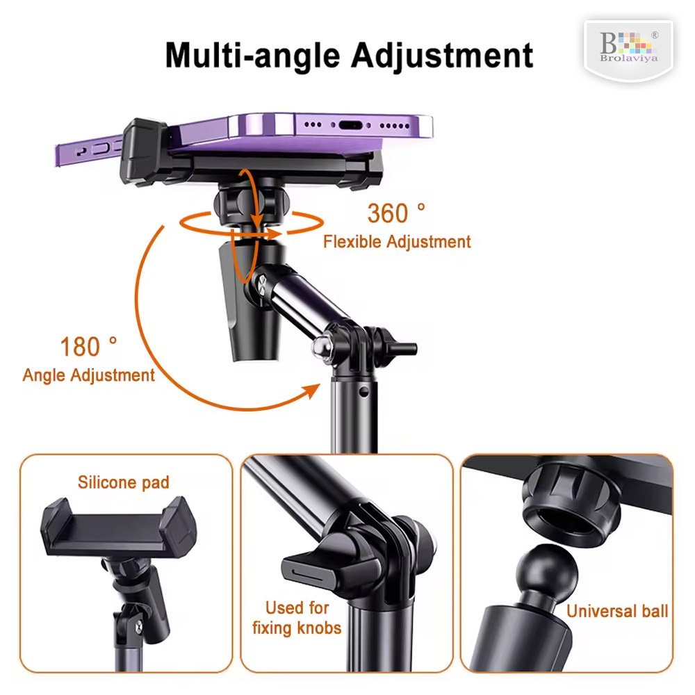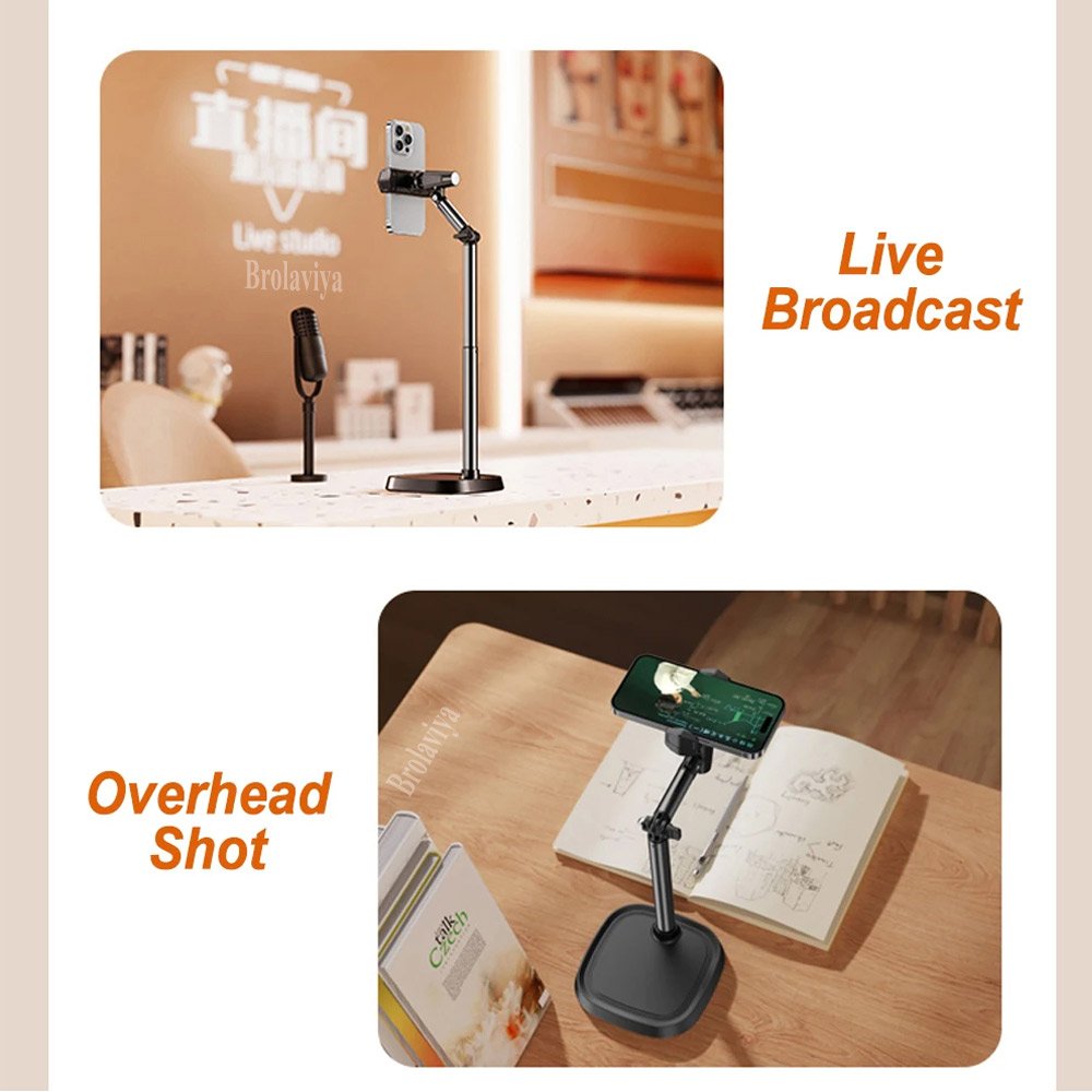 BROLAVIYA® Desk Mount Adjustable Multi Angle Long Arm Stand for Phone and Tablets 4-11 Inch, for Live Streaming, Online Learning, Overhead Drawing