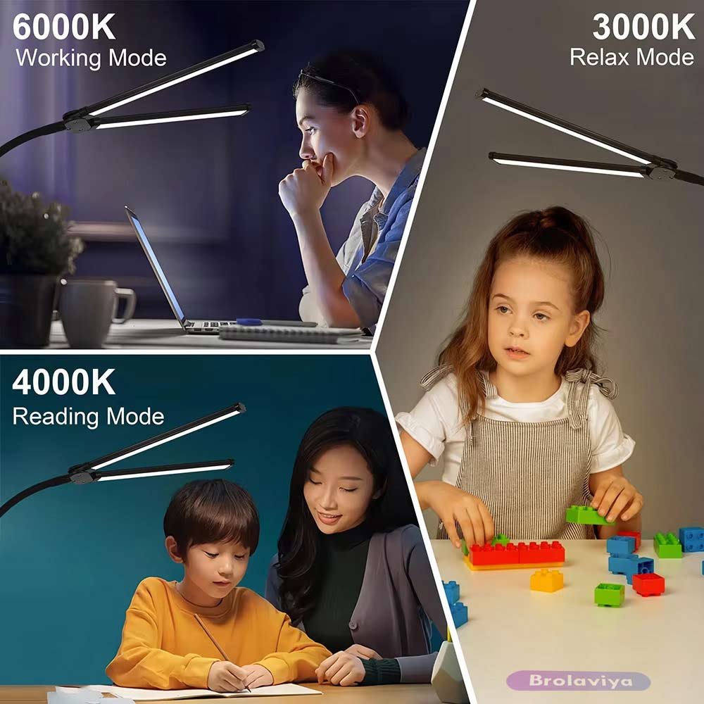 BROLAVIYA® Overhead LED 2 Head Dimmable Desk Lamp Extra-Long Height Light with Multi – Angle Rotation, 3 Lighting Modes for Home, Office, Desktop, Bedroom, Reading etc