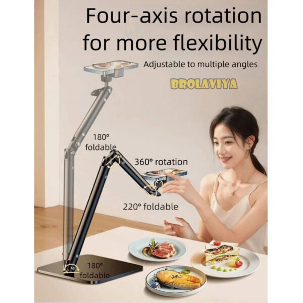 BROLAVIYA® Overhead Video Floor Stand, Premium Metal Body, 1/4″ Head For Webcam, Gopro, 360° Rotation with Mobile Bracket For YouTube, Desktop, Bedroom, Cooking and Recording