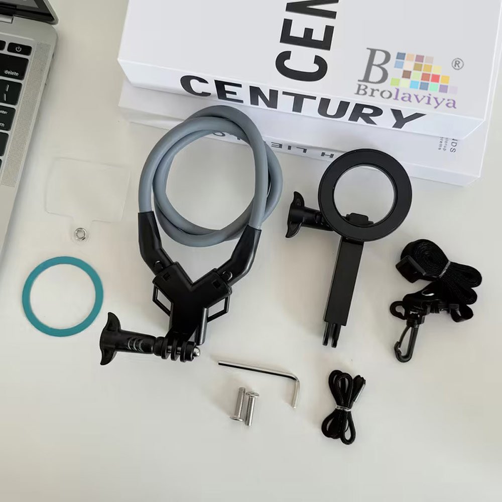 - Nack holder comes with a neck band, stabilizing strap, magnetic ring and mount, as well as an extender with a GoPro mount.