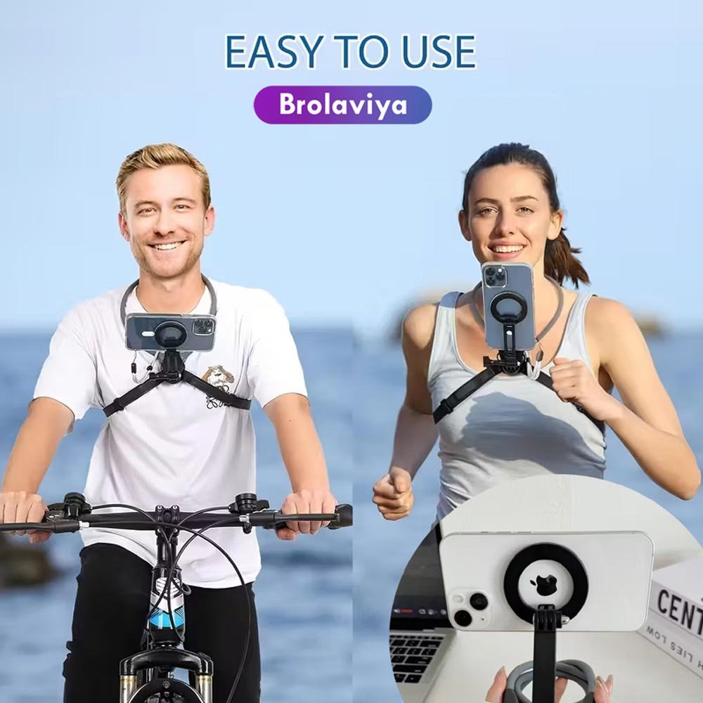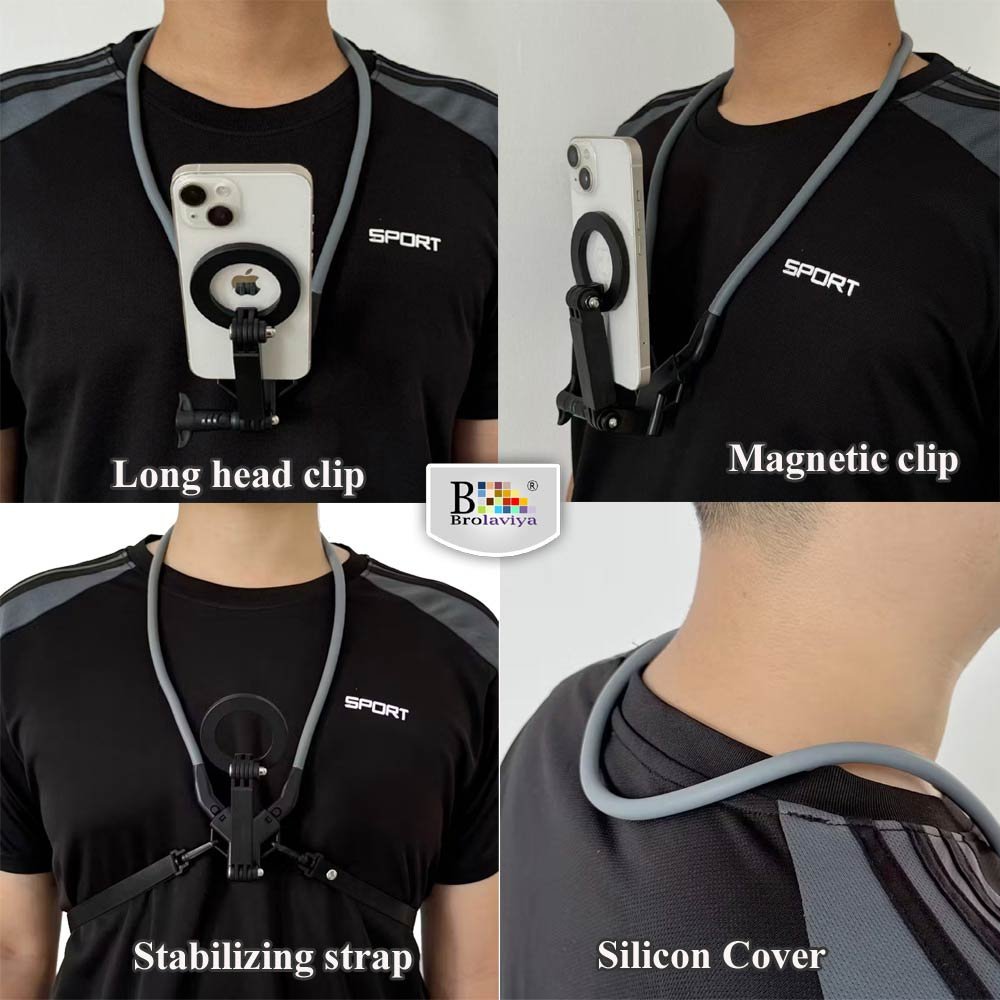 BROLAVIYA® Premium Magnetic Neck Phone Holder, Adjustable & Flexible Gooseneck Mount for Hands-Free Viewing, Vlogging & POV and Video Recording, for GoPro, iPhone, Samsung Mobile Phones
