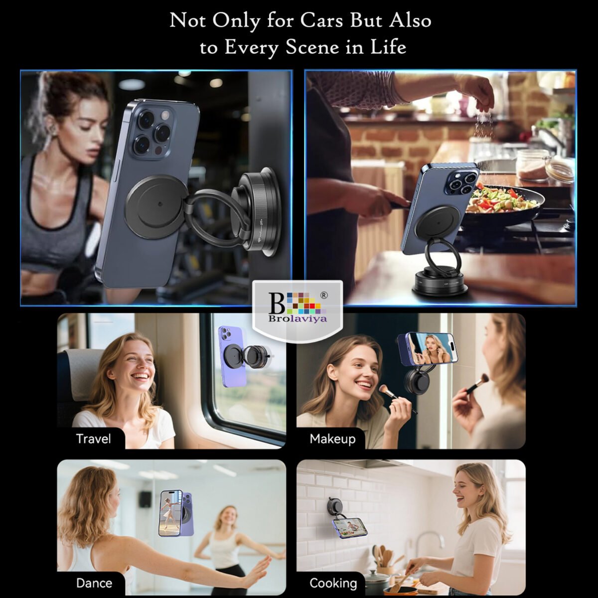 HomeAll ProductsLazy StandsDesk Stand BROLAVIYA® Car Mobile Stand with 360 Degree Rotating Magnetic Vacuum Suction Holder for Car Dashboard, Desk for iPhone, Android, GPS