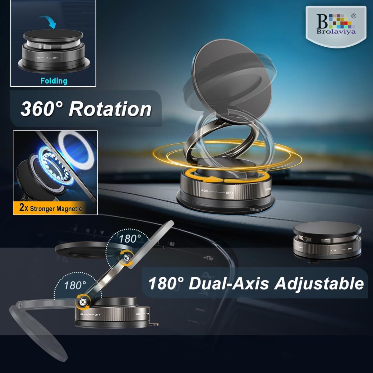 BROLAVIYA® Car Mobile Stand with 360 Degree Rotating Magnetic Vacuum Suction Holder for Car Dashboard, Desk for iPhone, Android, GPS