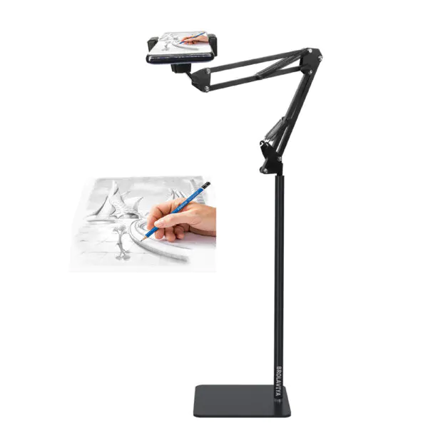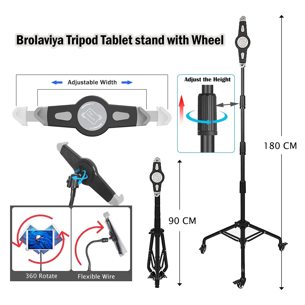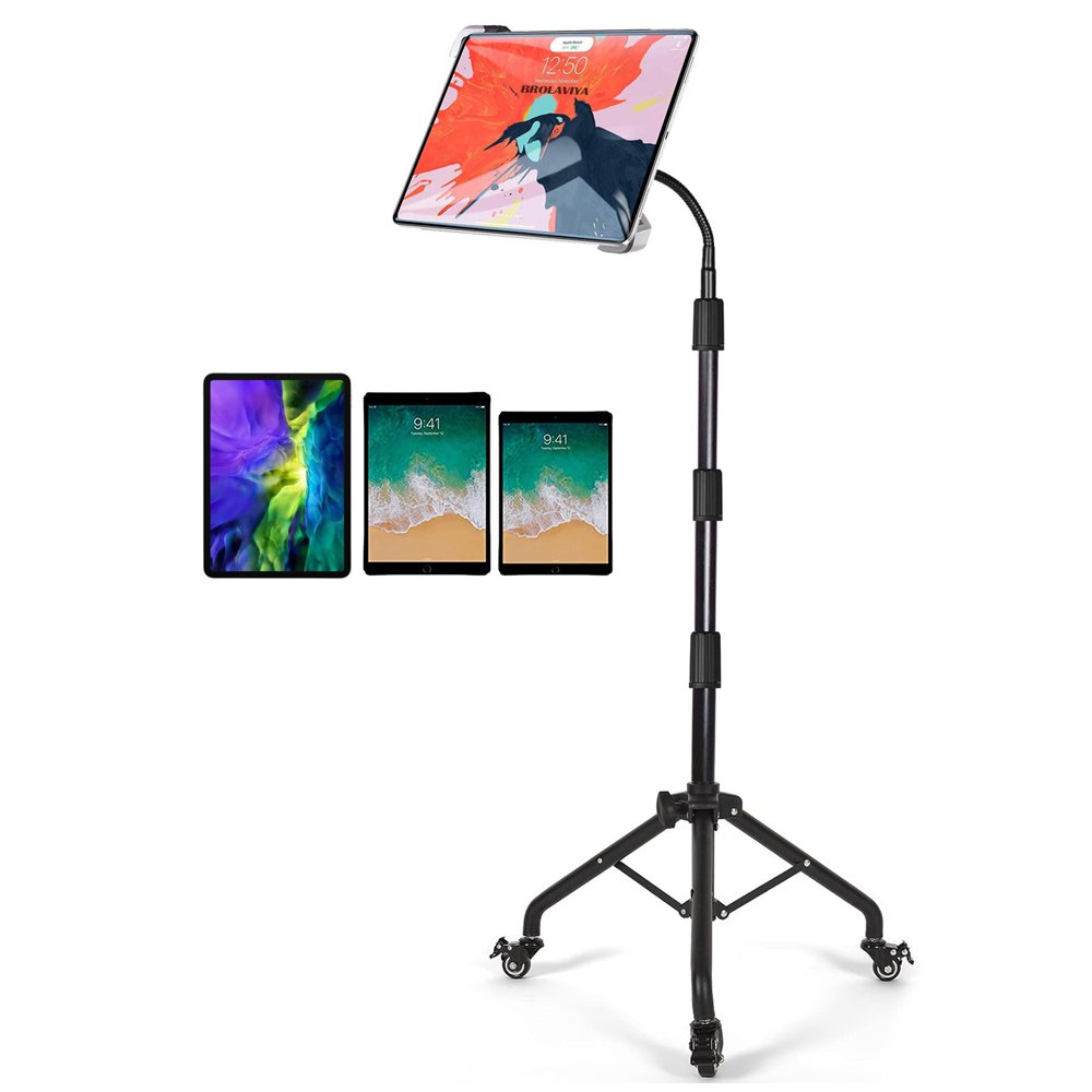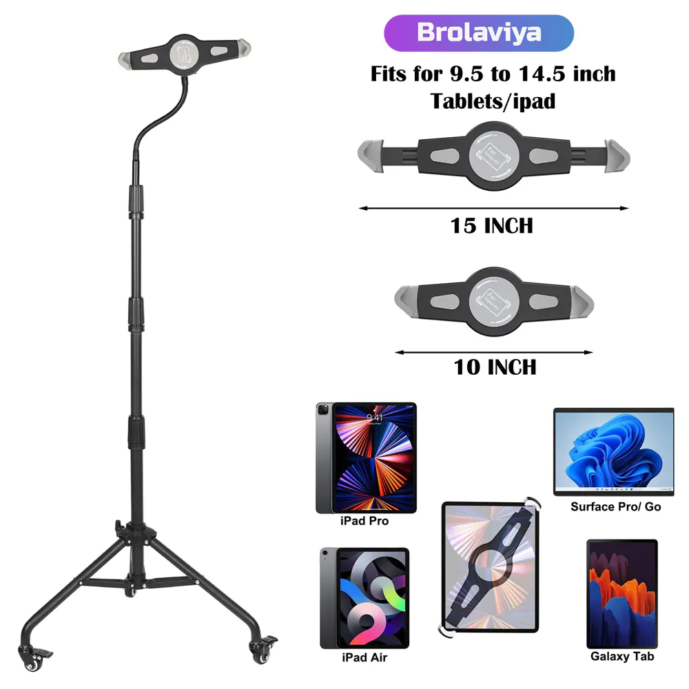 BROLAVIYA® Tablet Tripod Floor Stand with Wheels and Adjustable Gooseneck Mount for Home,Office, Stage for All 9.5~14.5 Diagonal inches Large Display Devices iPad, iPad Pro, Galaxy Tab, Surface Pro