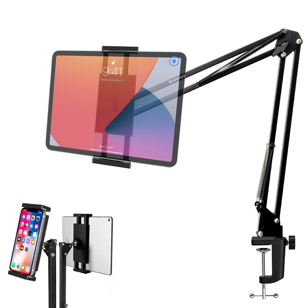 - New design large bracket : Brolaviya upgraded bracket is compatible with tablets and phones screen display between 4 inches – 12.9 inches which length or width within the range from 4.7 to 9.8 inch. Product length is 29.5 inch in total.