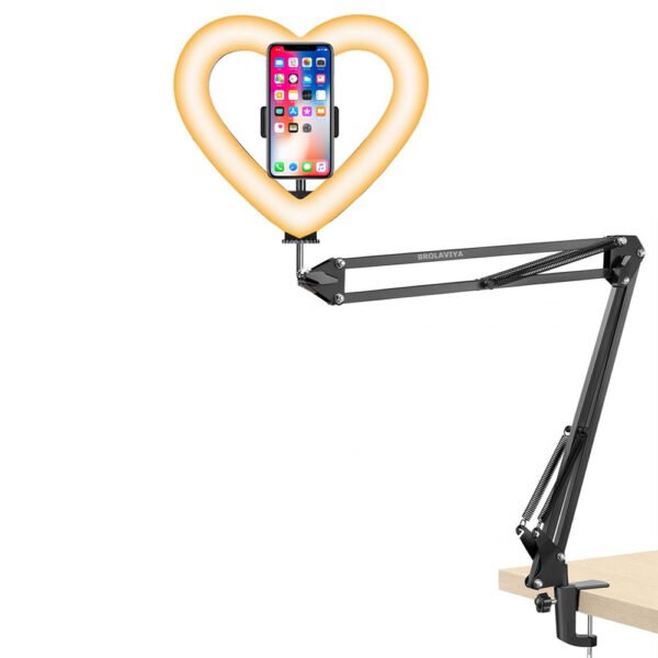 BROLAVIYA®No Shadow Overhead Video Mobile Stand with Extra Long Metal Arm,10inch Selfie Ring Light,2 Way Base clamp 1/4″ Adaptor for Camera, GoPro and Mobile Bracket for Desktop, Bedroom, Office