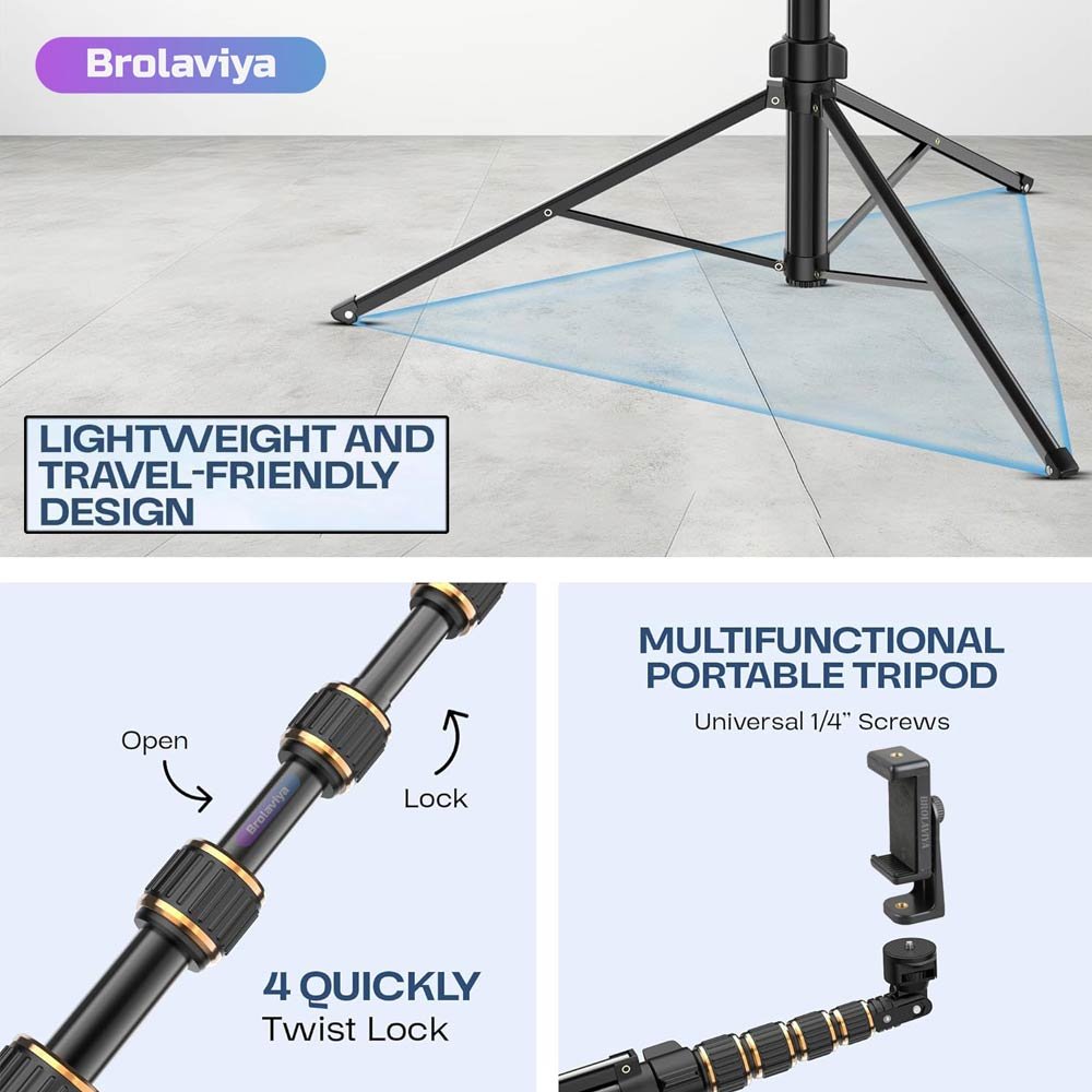 (Renewed) BROLAVIYA® Multi-Function Mobile Phone Live Broadcast Tripod Stand Dual Use Tripod and Selfie Stick at Travel Use Video Shooting Stage Program Study Event and Team Meeting